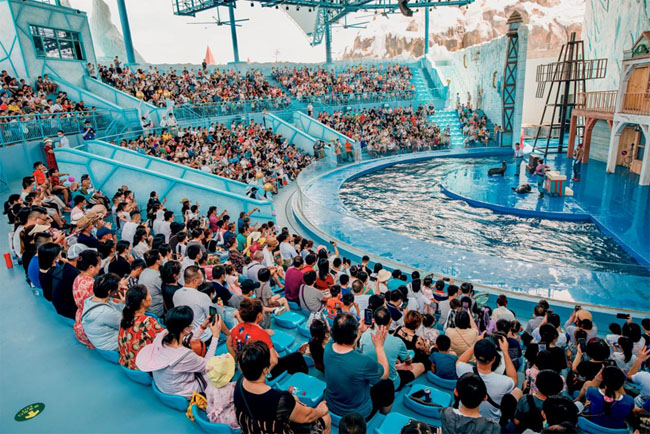 海洋乐园以 “夜幕奇遇·‘鲸’喜相伴” 为主题,打造全天候的欢乐海洋。白天,精彩绝伦的动物表演和近距离的萌宠互动,让孩子们与可爱的动物们亲密接触;夜晚,森林光影秘境、星光瀑布、篝火晚会和海湾市集依次登场,为亲子家庭开启一场充满奇幻与温馨的夜间之旅,让孩子们在游玩中探索海洋奥秘,家长也能放松身心。