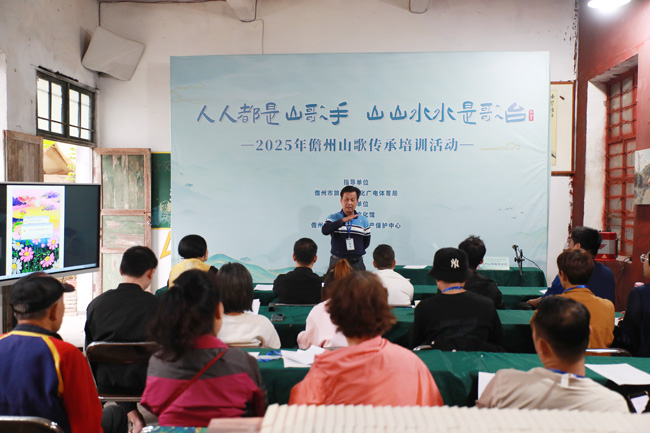 11月18日,儋州市青年文化创意园内歌声悠扬、掌声阵阵,以“人人都是山歌手,山山水水是歌台”为主题的2025年儋州山歌传承培训活动在此开课。来自全市的多名山歌手与山歌爱好者齐聚一堂,开启为期四天的系统学习,共同为这项古老非遗的传承注入新活力。