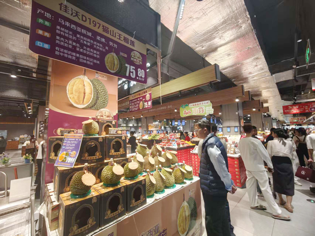 1月2日,记者从乐卖特超市大勇店了解到,2025年12月31日,一批从马来西亚直采的猫山王、黑刺榴莲已顺利运抵门店,并于1月1日正式上架销售。这是海南全岛封关运作后,儋州市场迎来的首批享受零关税政策的进口马来西亚榴莲。