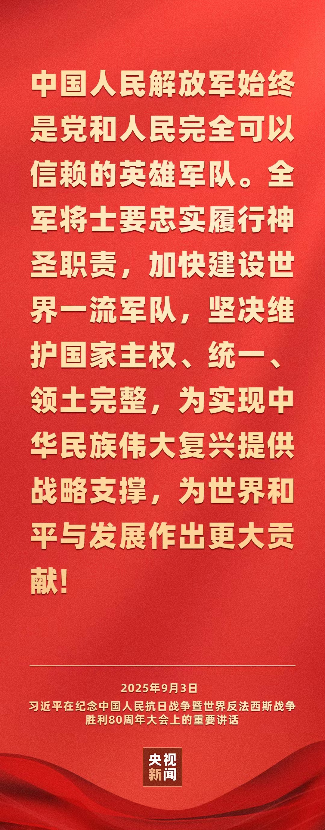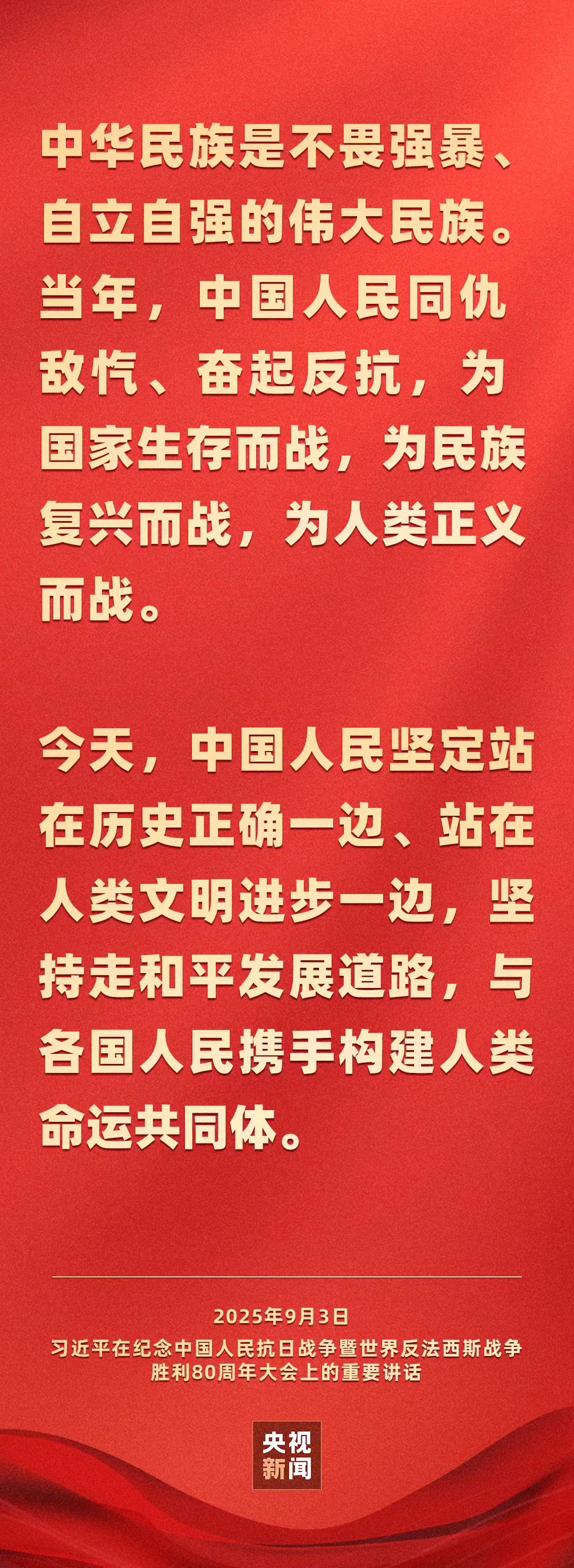 习近平在纪念中国人民抗日战争暨世界反法西斯战争胜利80周年大会上发表重要讲话。